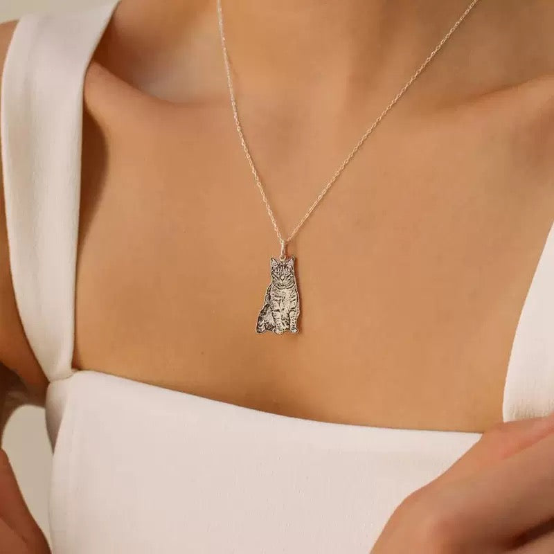 Personalised Pet Silhouette Necklace – Custom Photo Engraved