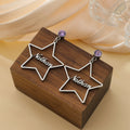 Shine bright with these personalised star name earrings, beautifully accented with a sparkling birthstone crystal to celebrate your unique story. Each earring features your custom name or word delicately engraved inside a star-shaped frame, symbolising light, hope, and individuality.