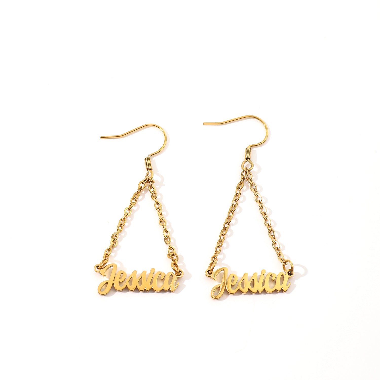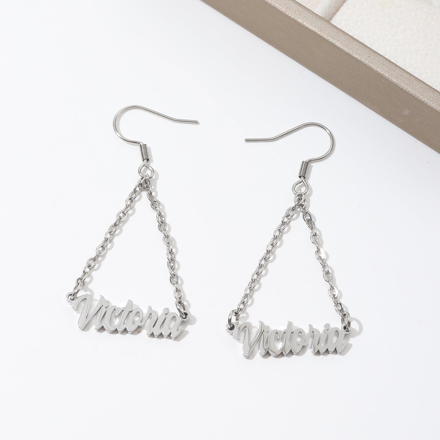 Personalised Triangle Chain Name Earrings – Custom Drop Earrings