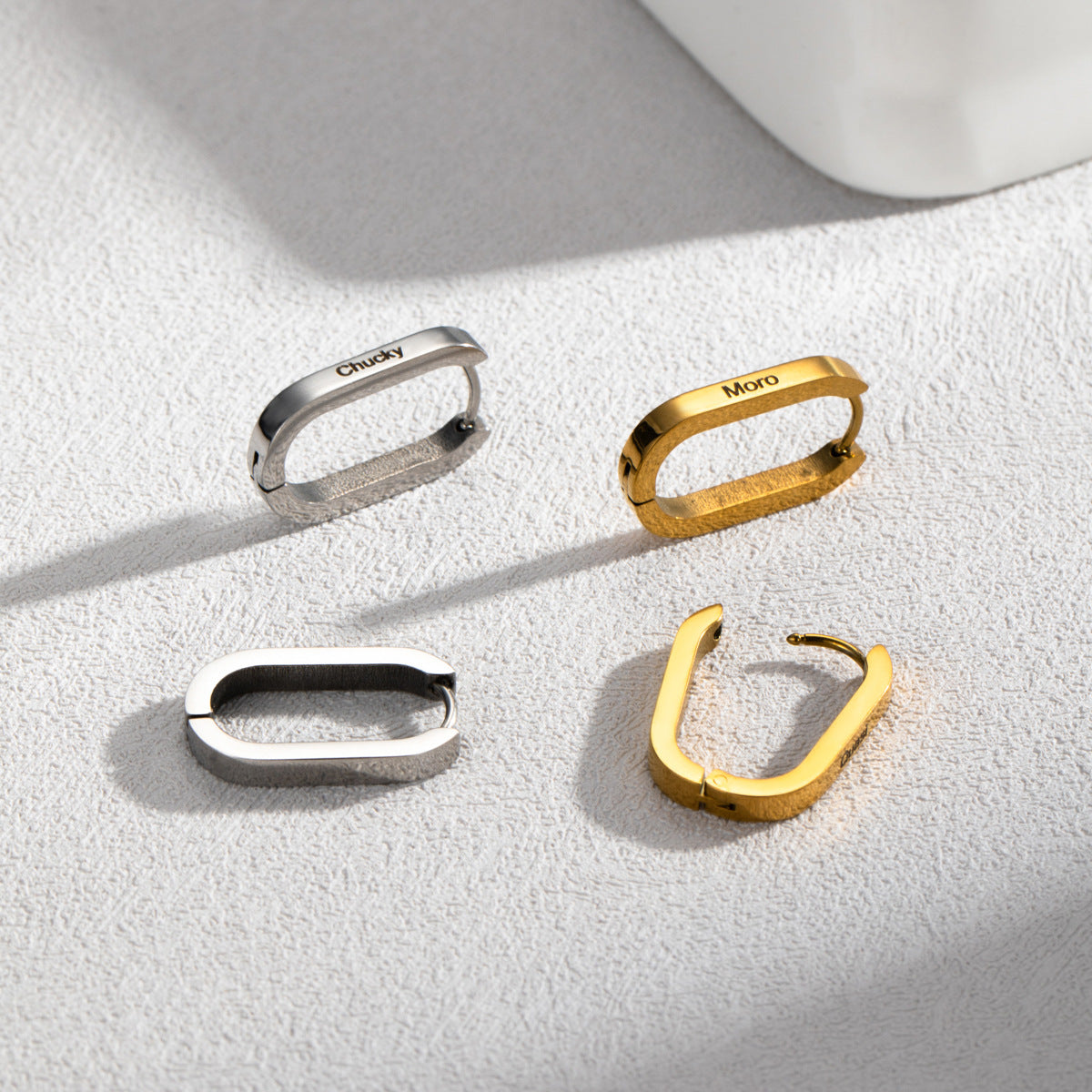 Personalised U-Shaped Hoop Earrings – Custom Name Engraving