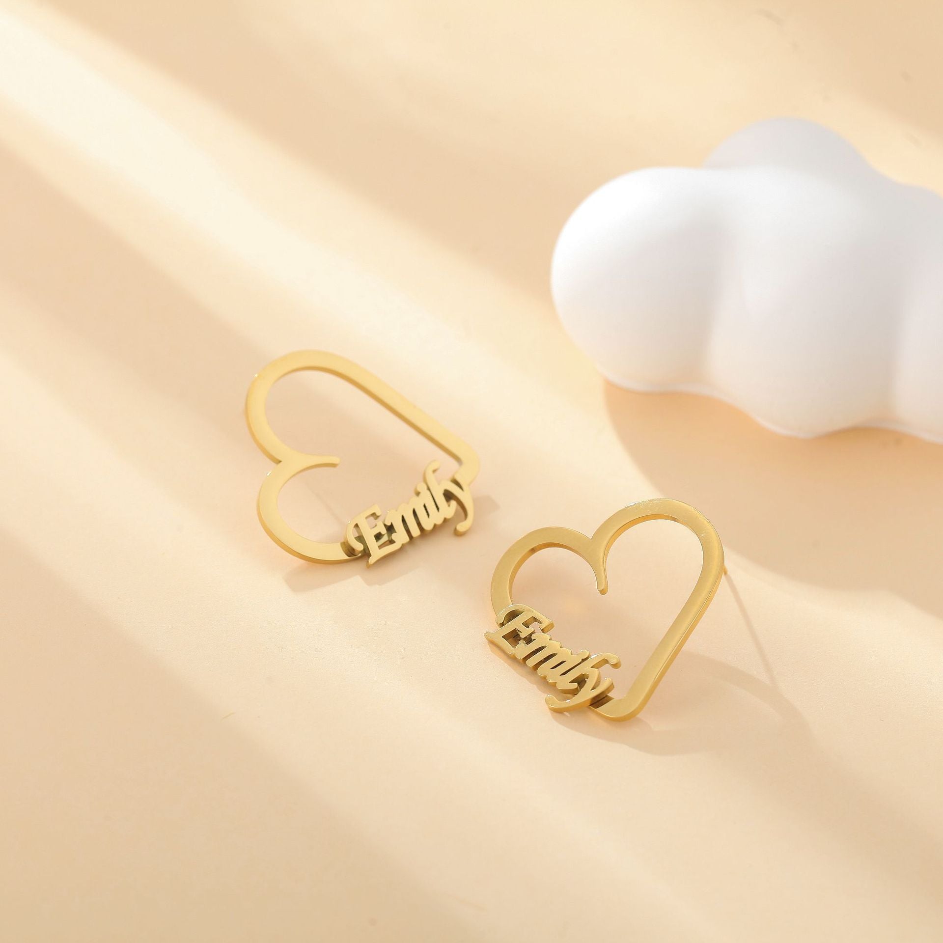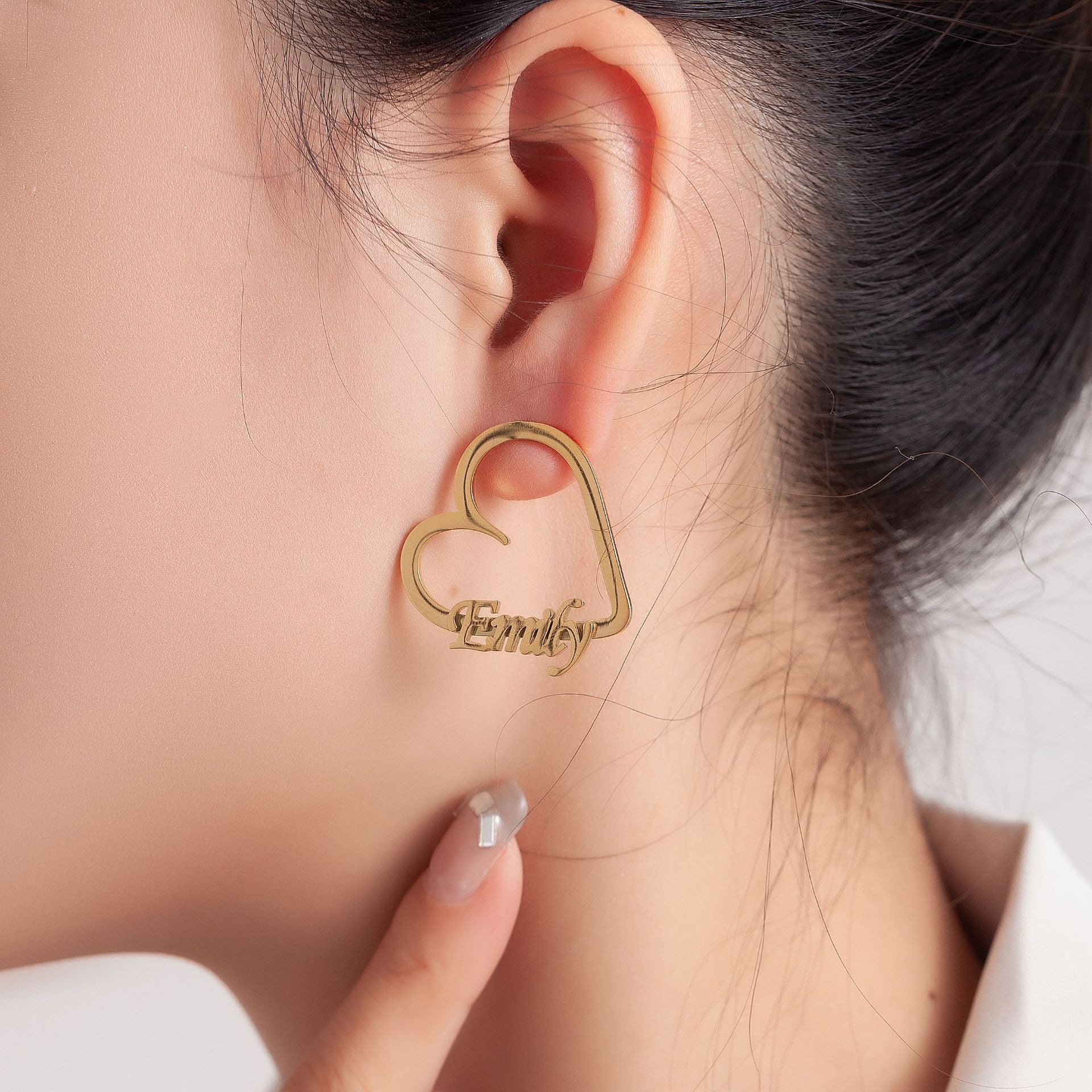 Personalized Heart Name Earrings - Custom Name Gift For Her