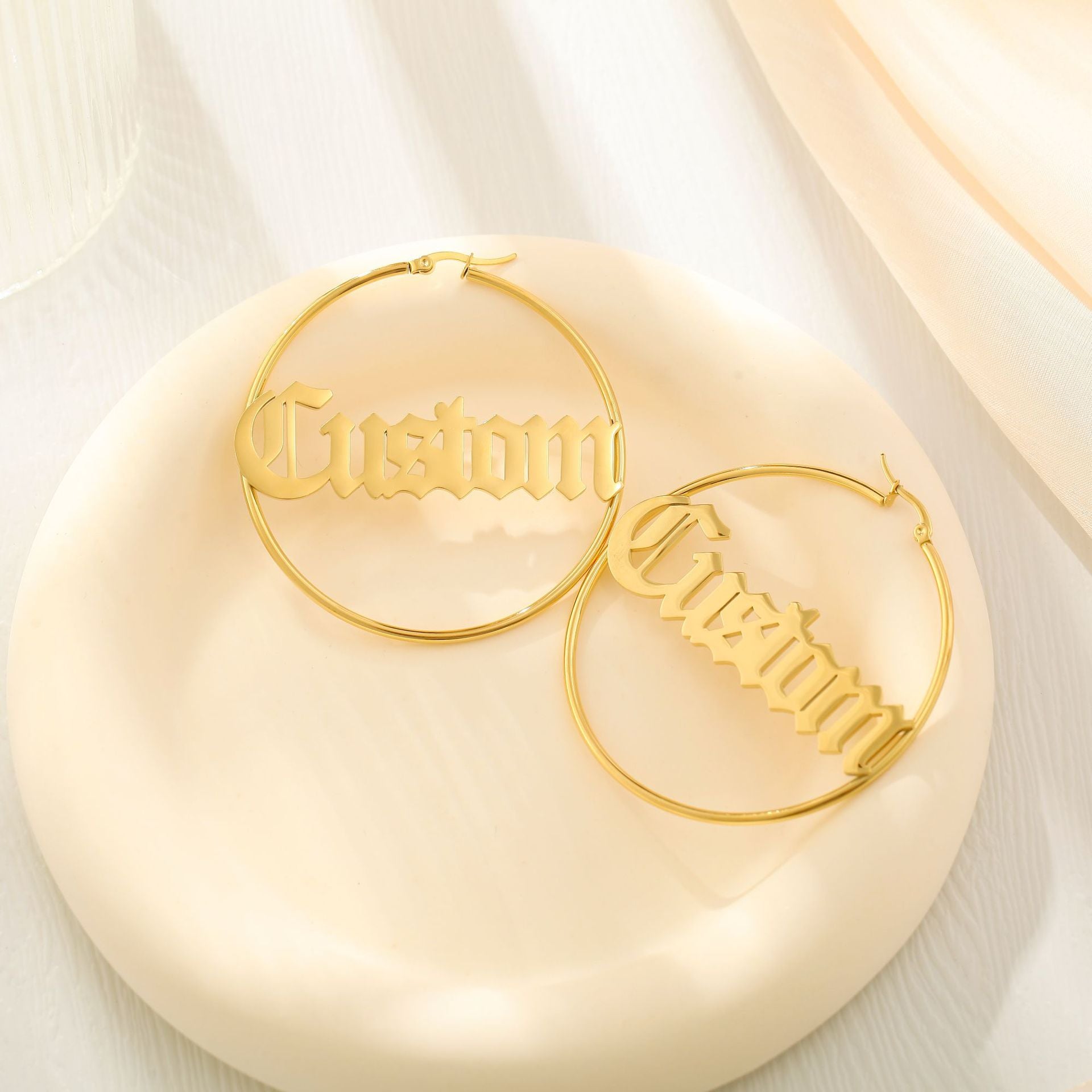Personalized Name Hoop Earrings - Custom Gift For Her