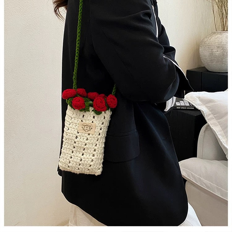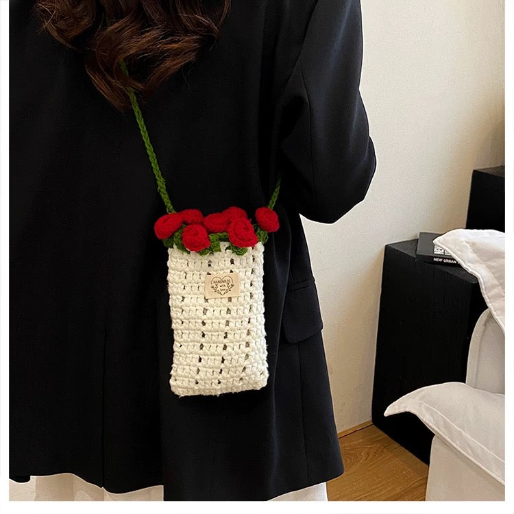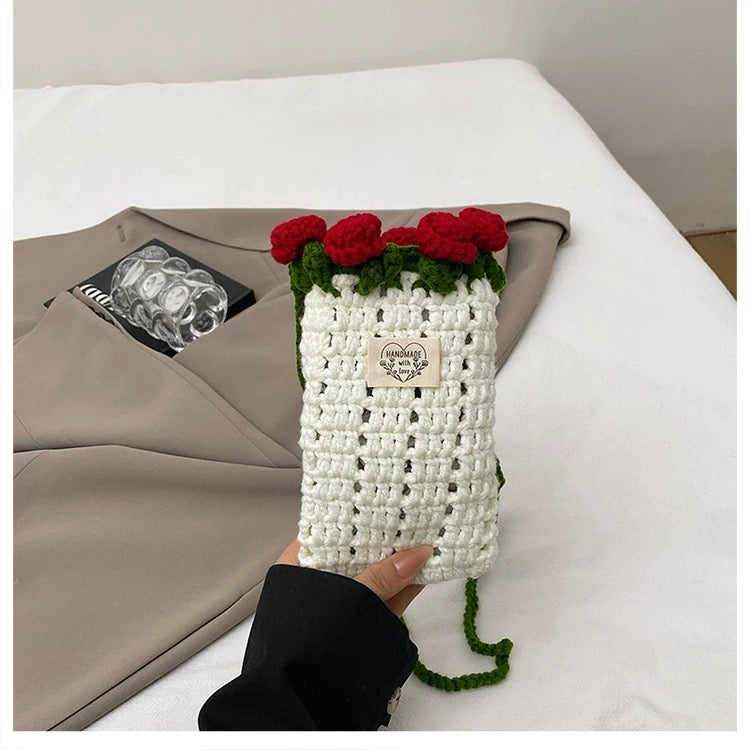 Rosie Bloom - Handmade Crochet Mini Phone Bag | Cute Crossbody Gift Pouch