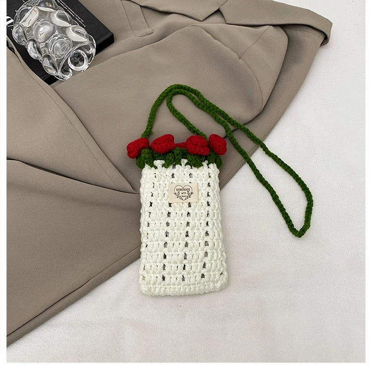 This adorable handmade crochet phone bag is carefully crafted with love and attention to detail. Each piece features a charming woven texture, making every bag slightly unique — no two are exactly the same.