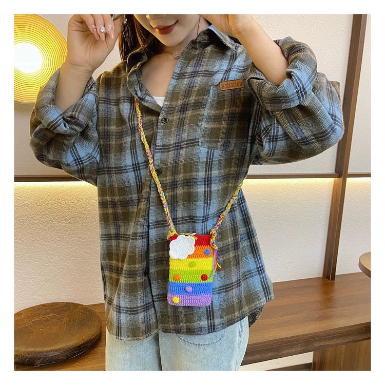 This adorable handmade crochet phone bag is carefully crafted with love and attention to detail. Each piece features a charming woven texture, making every bag slightly unique — no two are exactly the same.