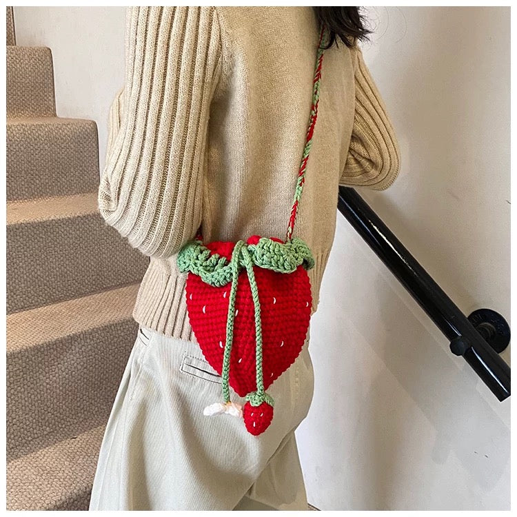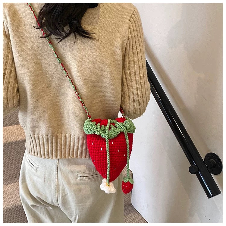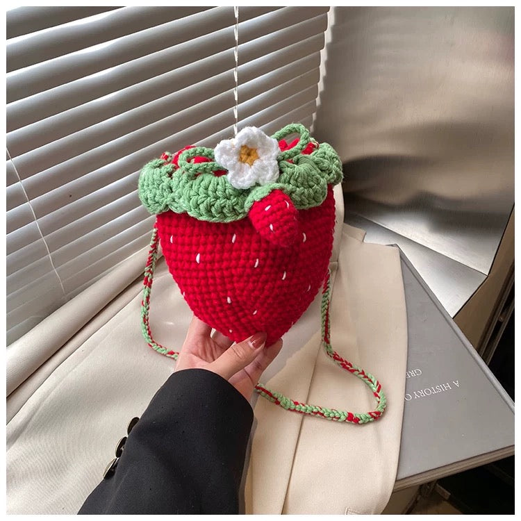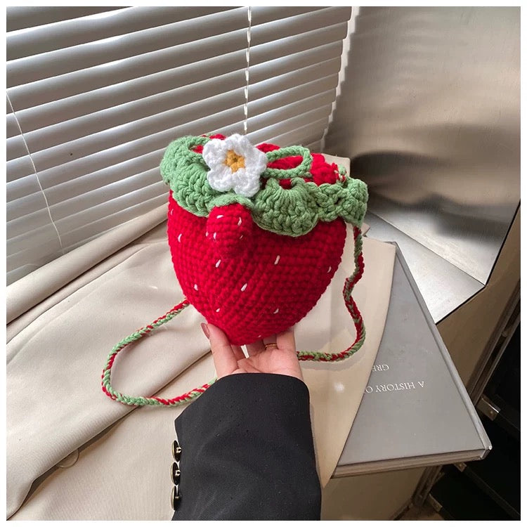 Strawberry Daisy - Handmade Crochet Mini Phone Bag | Cute Crossbody Gift Pouch