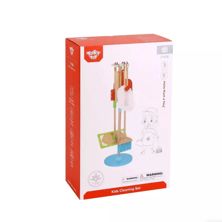 Tooky Toy delightful collection of pretend play wooden cleaning set help your child build key skills like independence and motor coordination with this wooden cleaning set. Perfect for preschoolers and toddlers to engage in pretend play while learning responsibility, the 6-piece set comes with realistic wooden tools and bright pops of colour. Little ones can clean just like grown-ups, developing essential skills along the way.