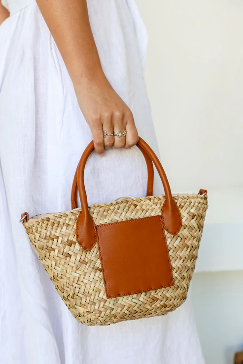 The Straw Contrast Tote Bag blends natural texture with timeless style. Crafted with woven straw and finished with rich tan vegan leather details, this women’s bag is perfect for warm-weather outings — from brunch dates to beach escapes.